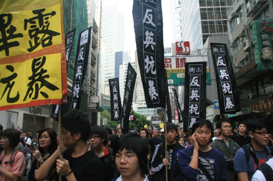 On Queen’s Road in Central Hong Kong. Organizers estimated that 15,000 people turned up on that day. In contrast, police authorities argued that the turn-out peaked at 5,000 only.