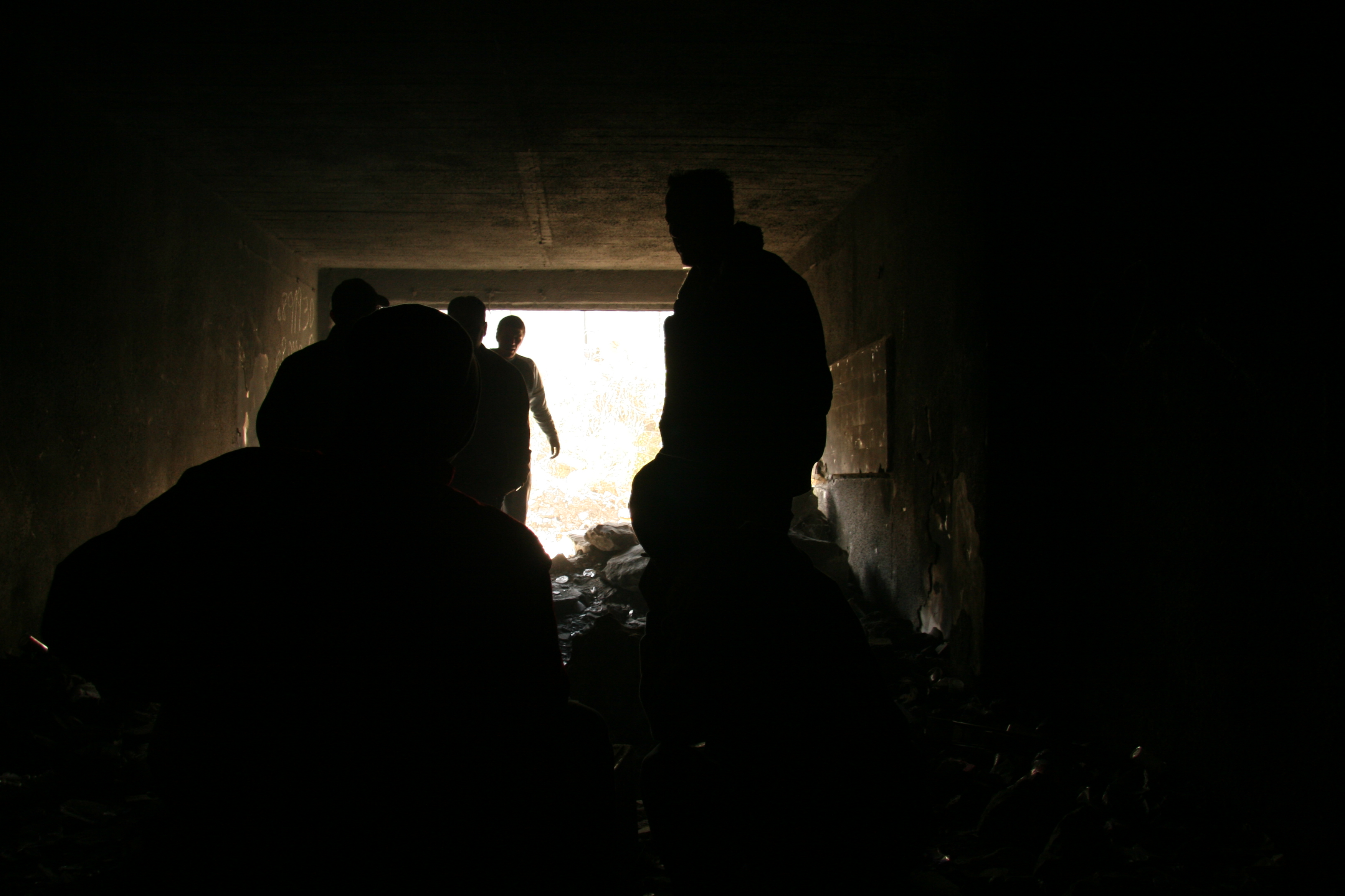 Salaymih looks at vague silhouettes of people slouching inside the crack house. They come out of a basement from an invisible hole. One man, holding a syringe in his hand, topples over the trash. He mumbles something. Barely aware of people next to him, he pulls down his pants, injecting a substance into his groin. Blood spurts. He turns around and disappears back into the pit.